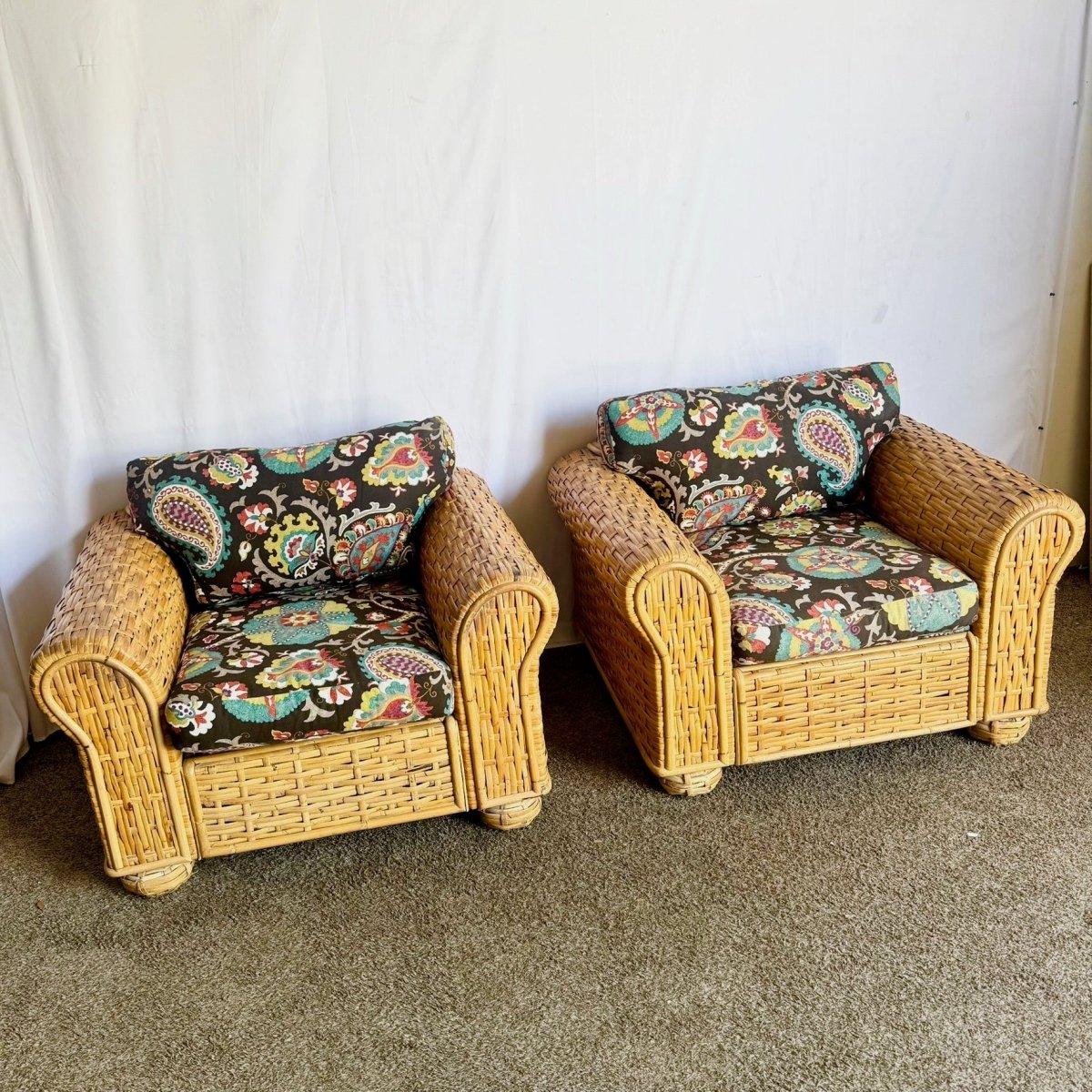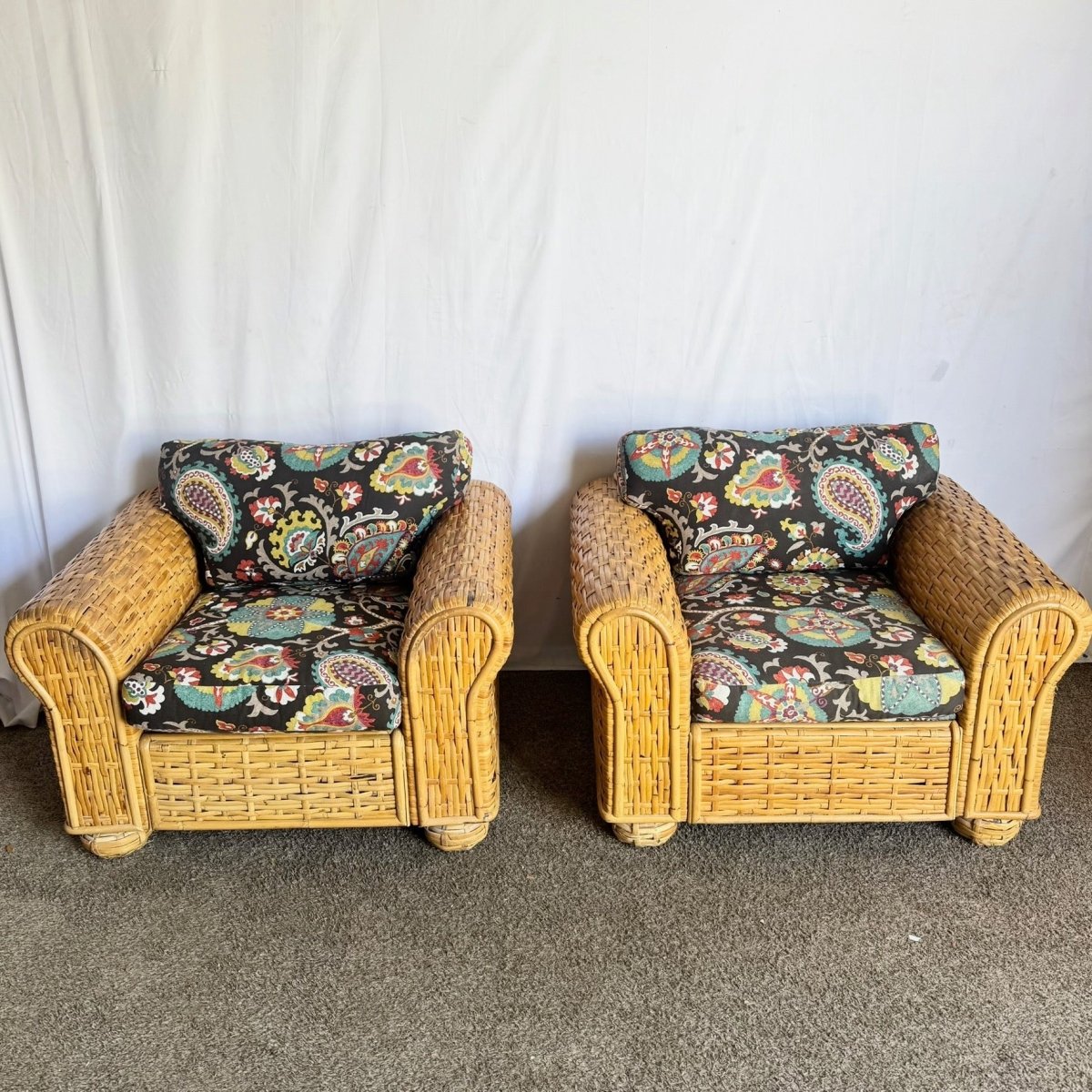 Boho Chic Woven Bamboo Rattan Lounge Chairs by Ralph Lauren - A Pair