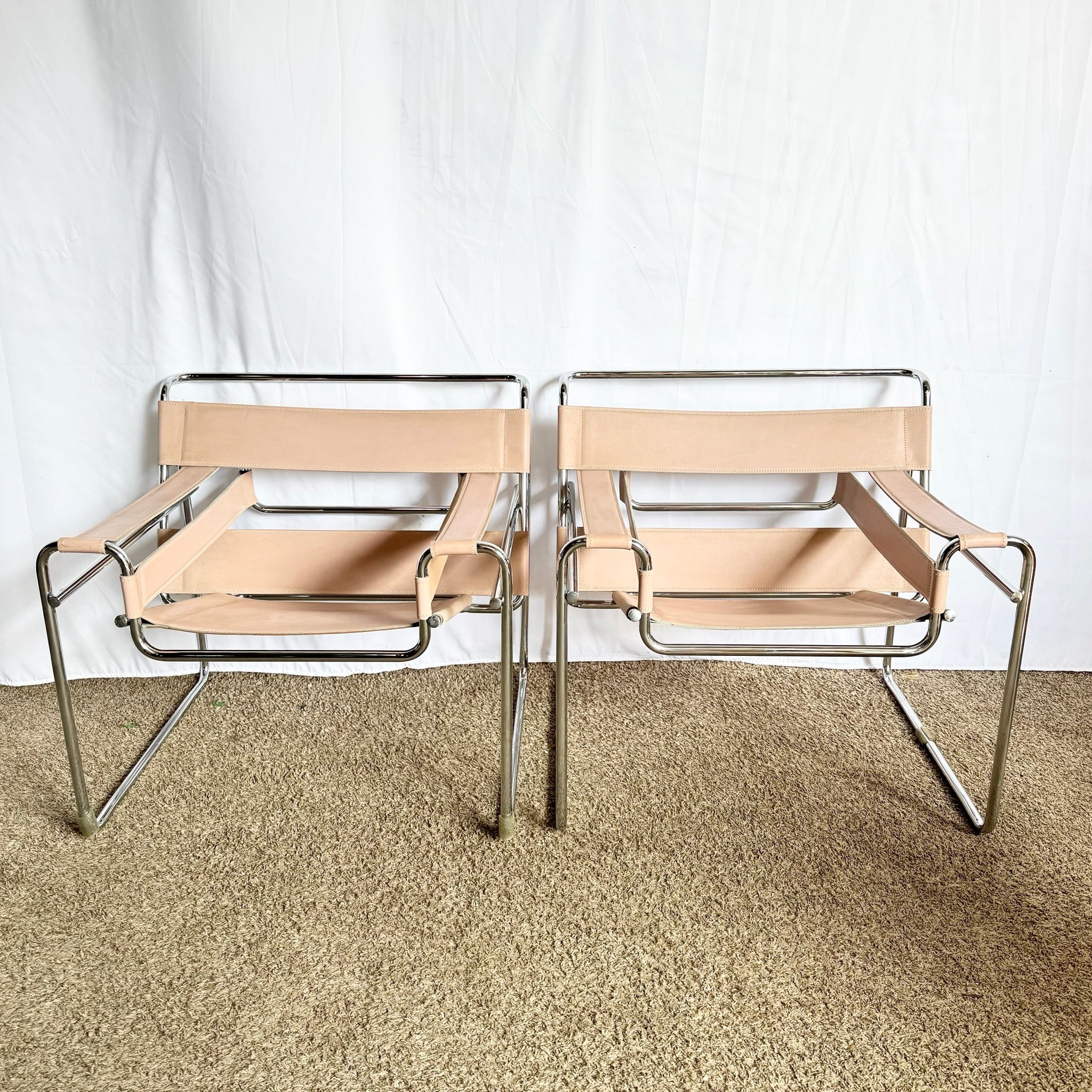Mid Century Modern Pink and Chrome Lounge Chairs, Wassily Style - A Pair