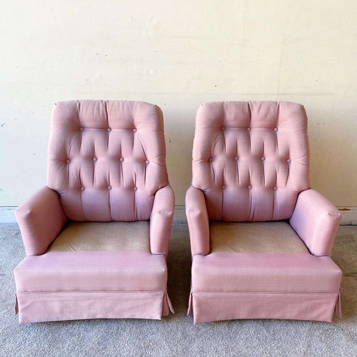 Mid Century Modern Pink Tufted Swivel Chairs