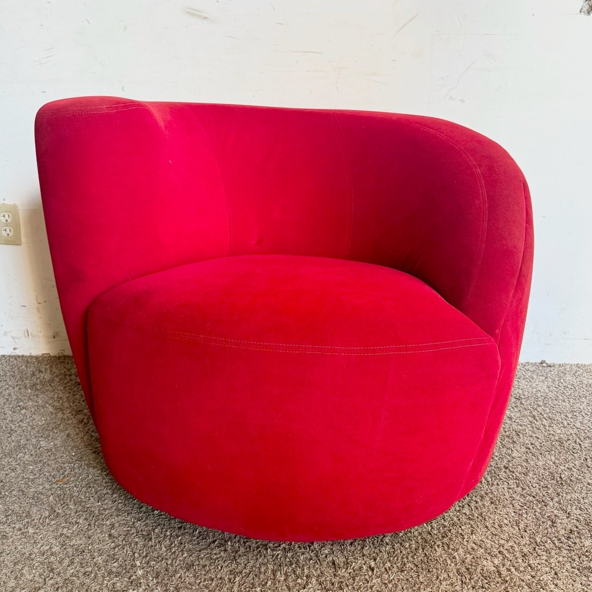 Postmodern Red Fabric Nautilus Swivel Chair