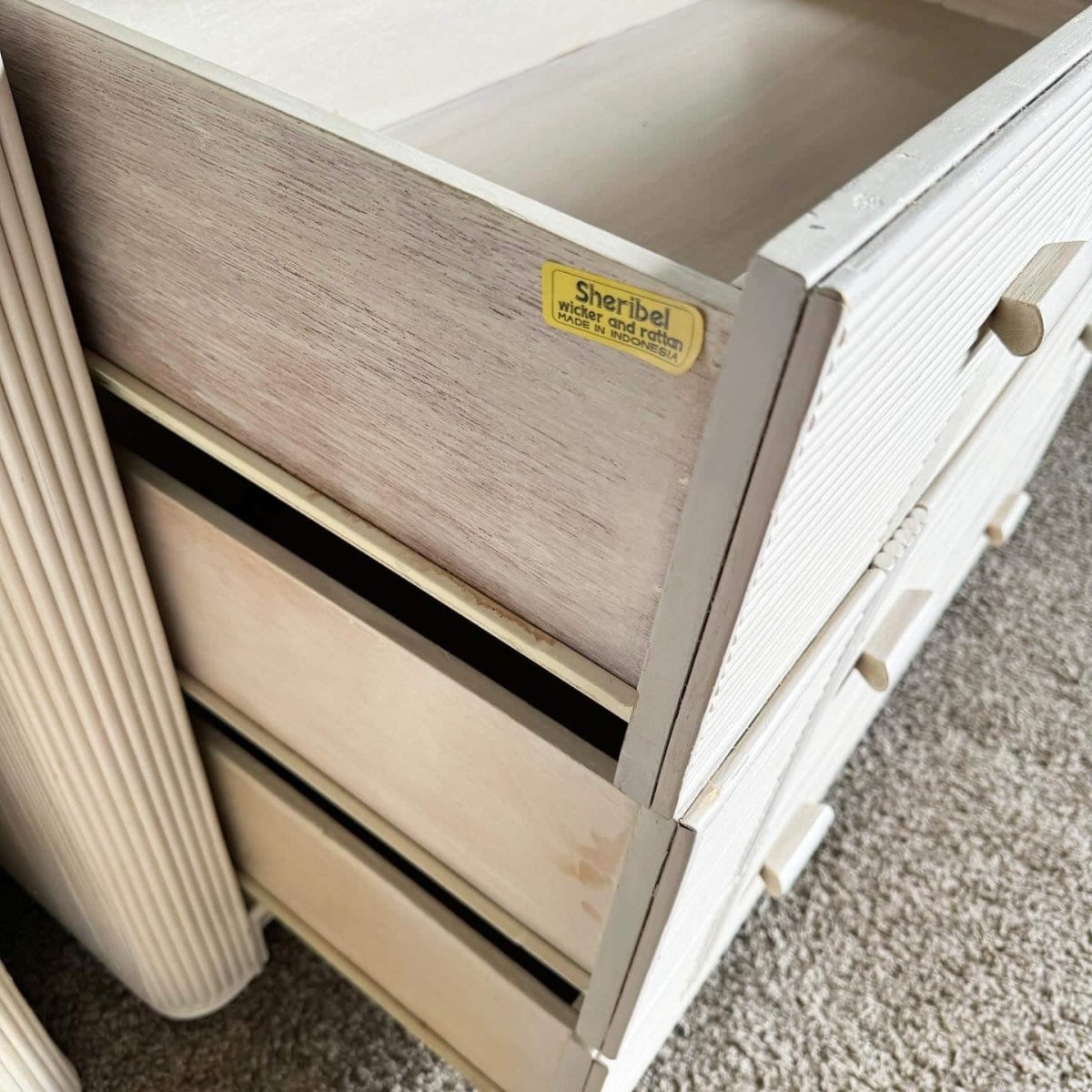 Boho Chic White Wavy Pencil Reed Dresser With Mirror