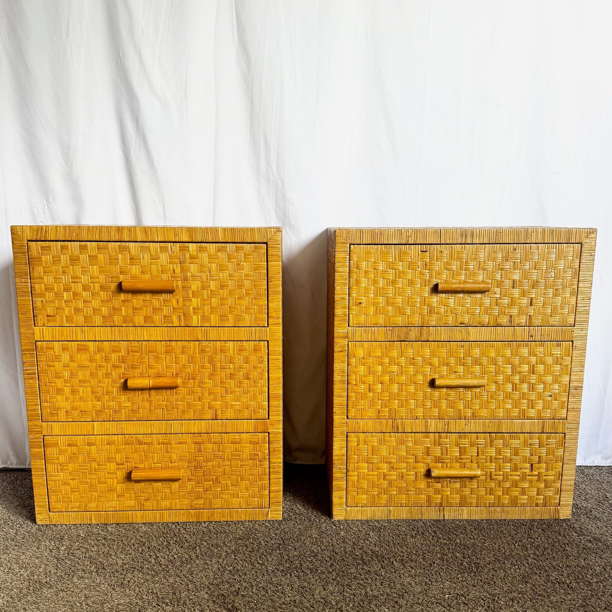 Boho Chic Wicker Chests of Drawers - A Pair