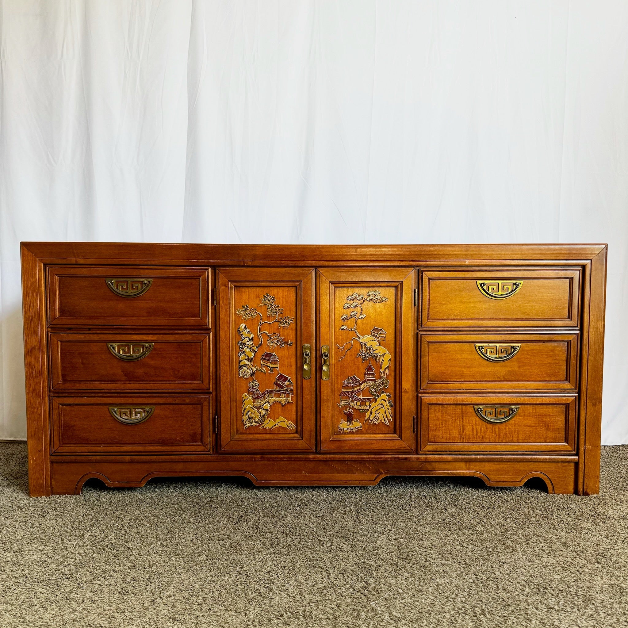 Chinoiserie Dresser With Brass Handles by Broyhill