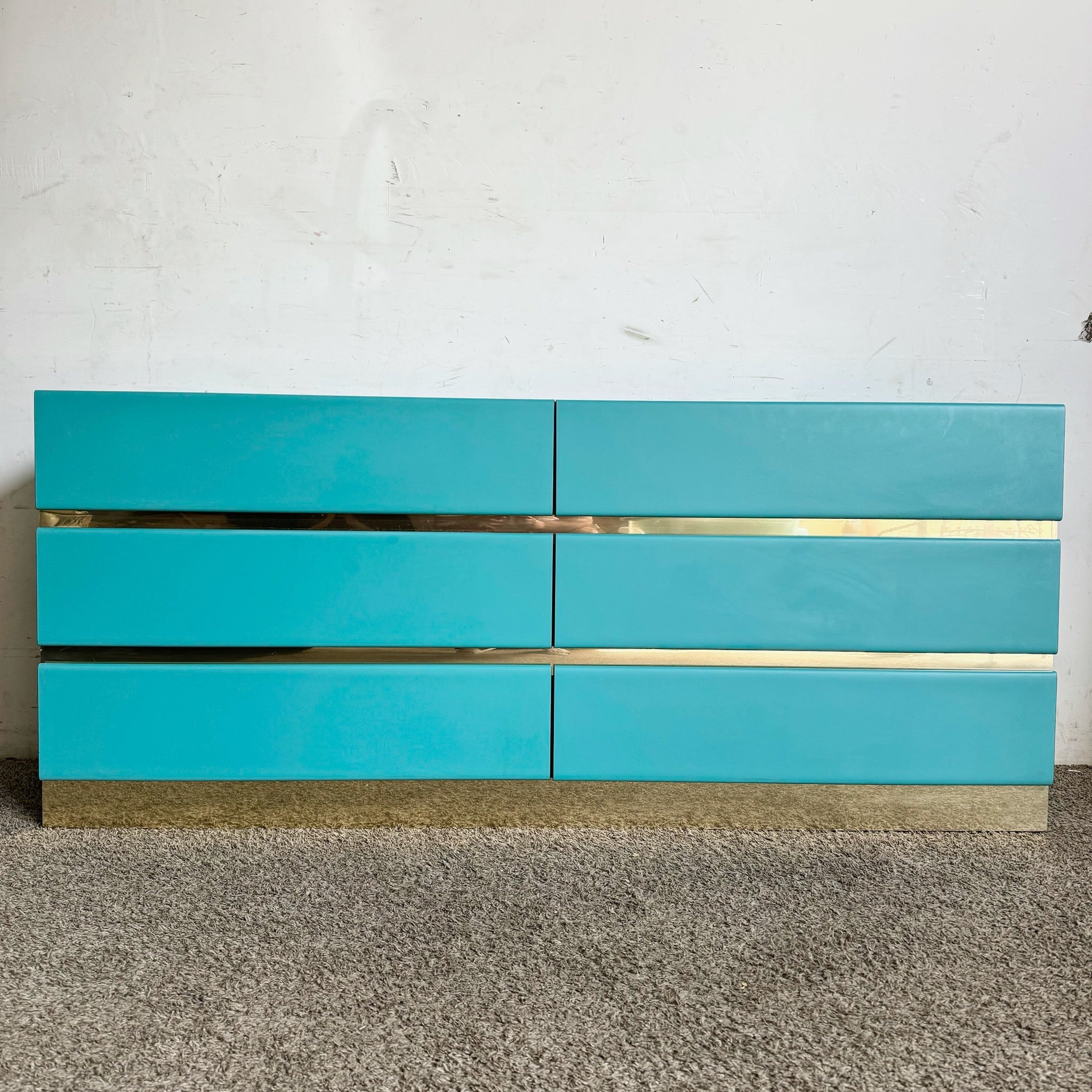 Postmodern Teal Laminate Dresser With Gold Accents - 6 Drawers