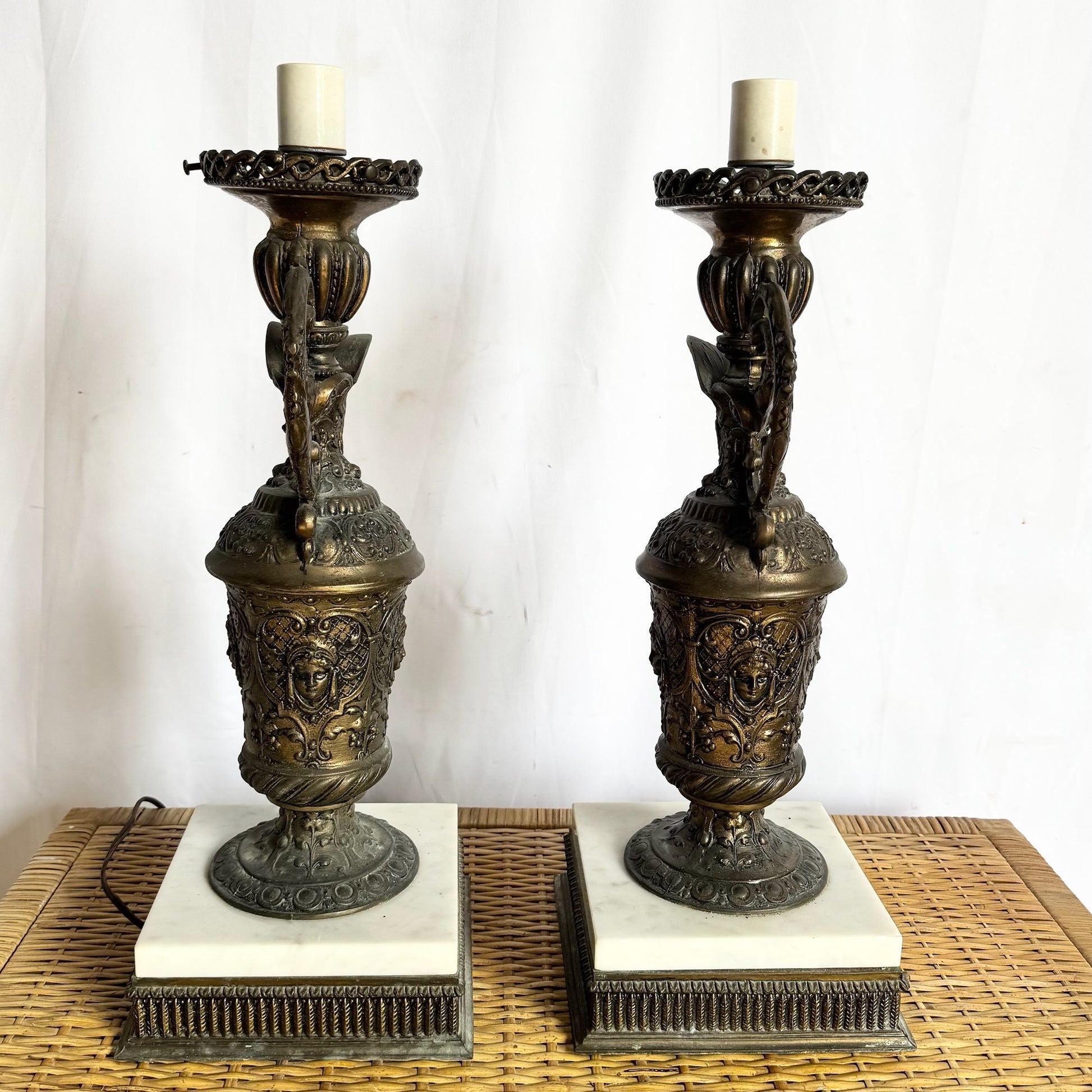 - The Antique French Bronze Ewer Oil Lamps feature elegantly cast bronze ewer forms converted to lamps, crowned with faceted crystal finials for luminous character.