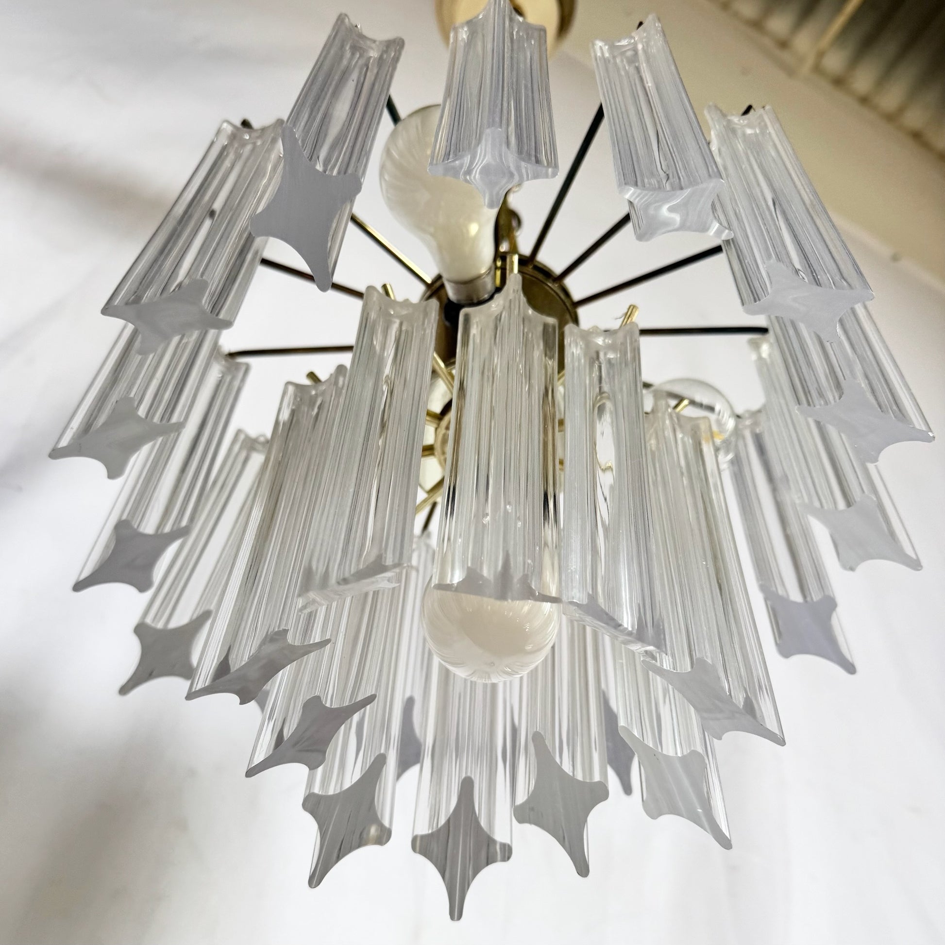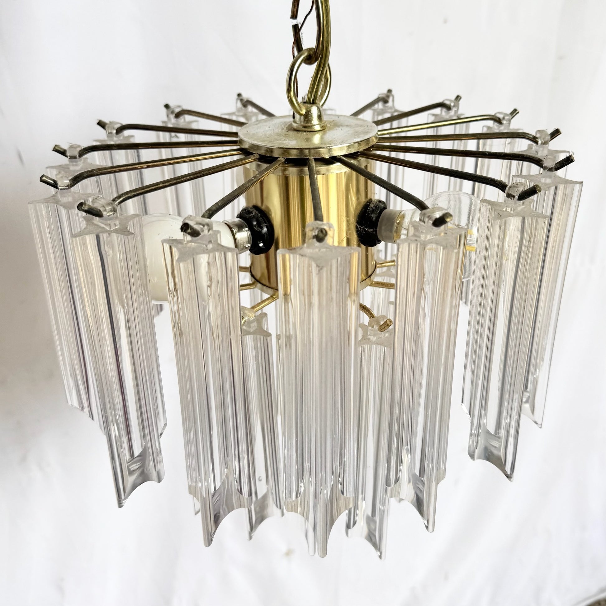 - The Art Deco Hanging Lucite Chandelier features layered lucite prisms and stepped geometric lines inspired by the glamour of the Art Deco era.