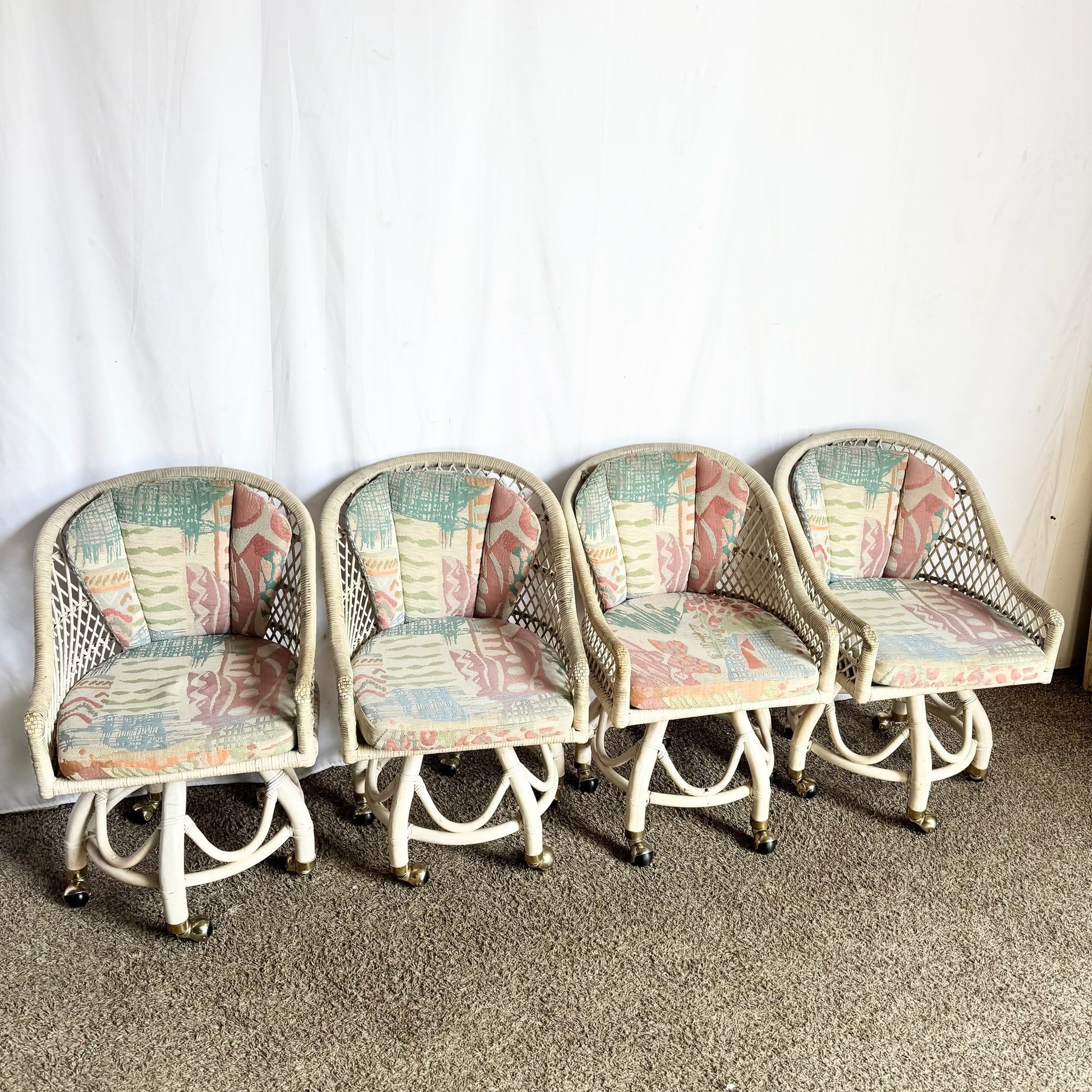 - Buri Rattan Swivel Dining Chairs Set of four featuring full-rotation swivel bases