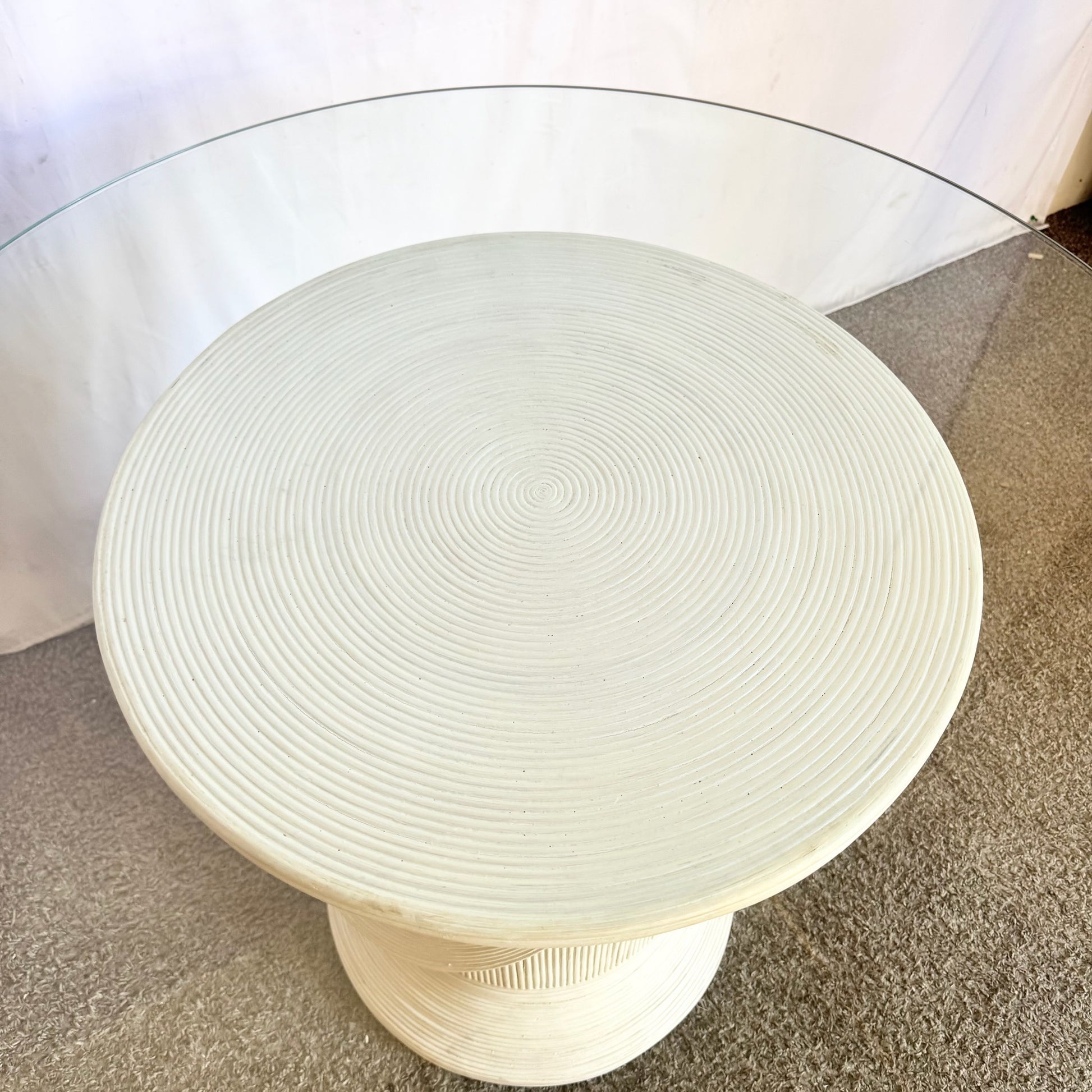 Boho Chic Sculpted Pencil Reed Circular Glass Top Dining Table
