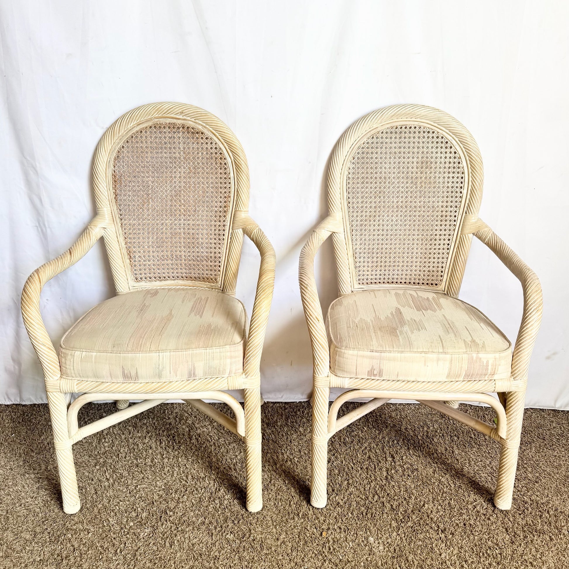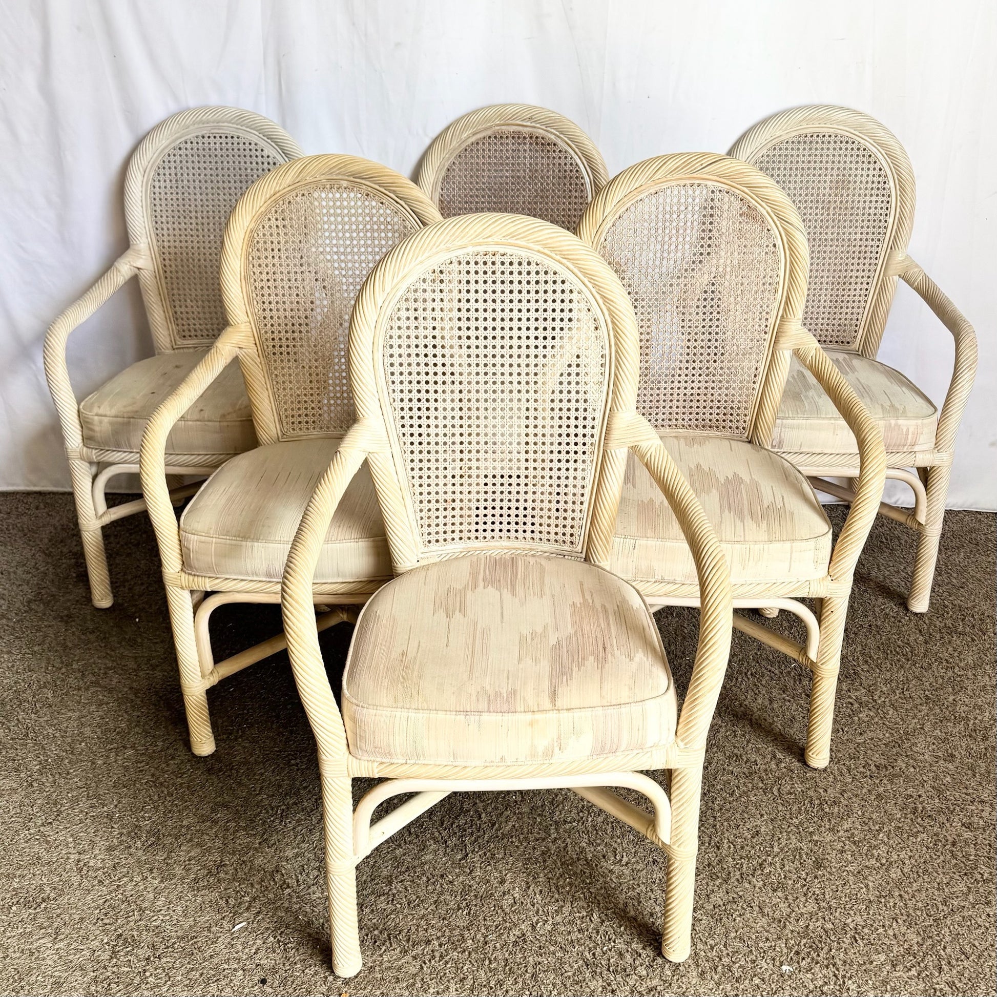 Coastal Twisted Reed Came Back Dining Arm Chairs - Set of 6