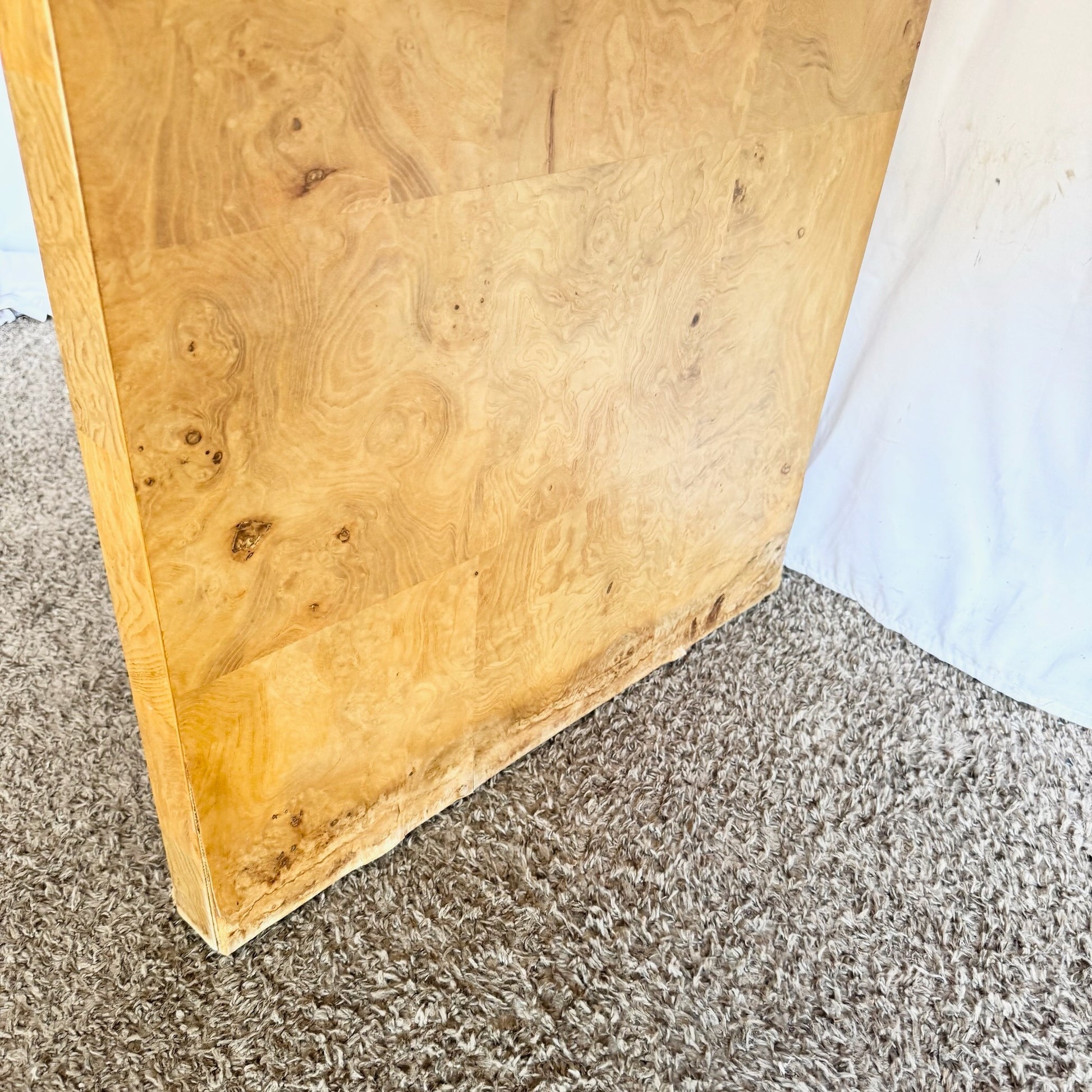 This Henredon Burlwood Waterfall Desk pairs rich burl-wood veneer with sleek waterfall styling, creating a poised workspace or statement furniture piece.
