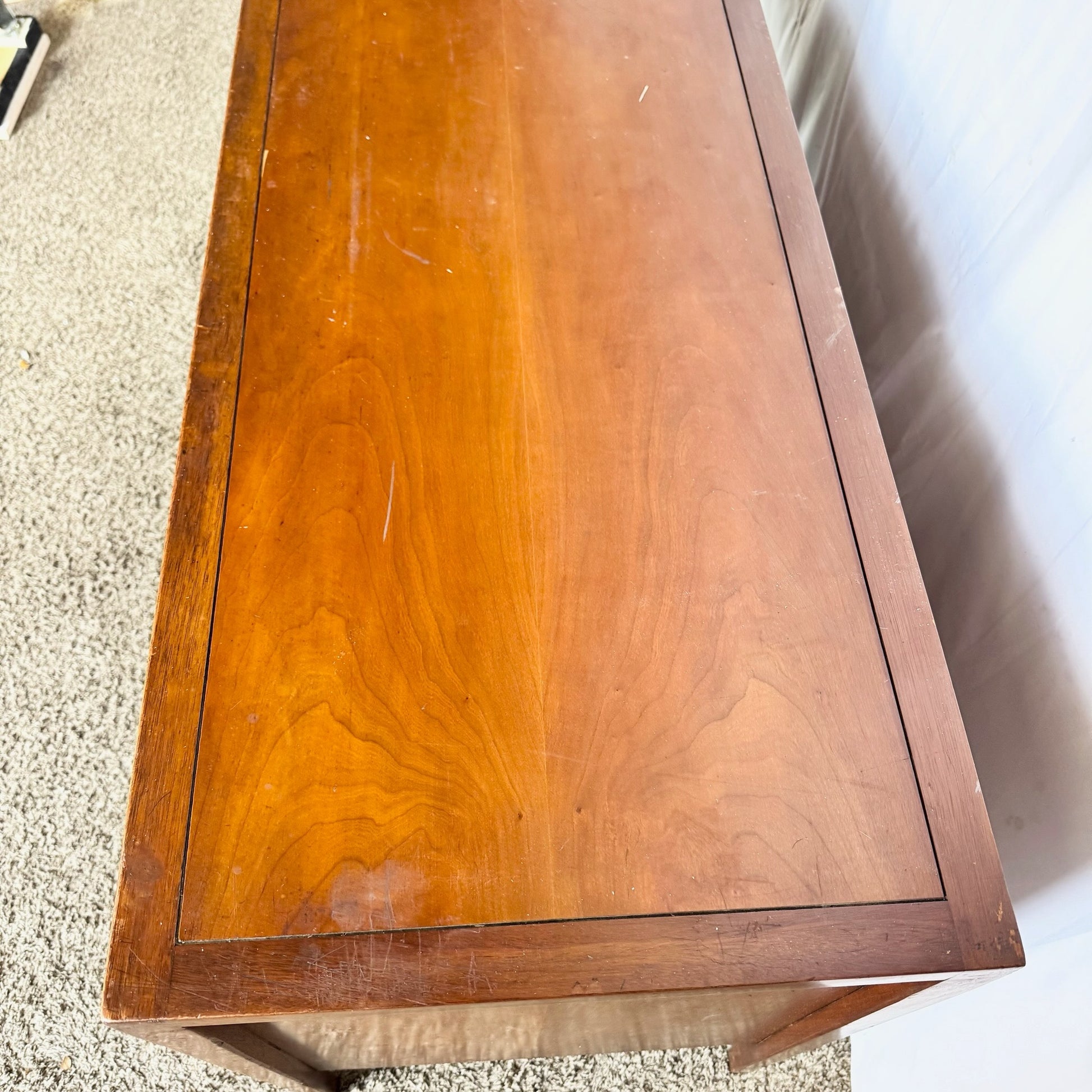 - The Mid Century Drexel Counterpoint Credenza features recessed circular pulls and a balanced mix of drawers and cabinets for versatile storage.