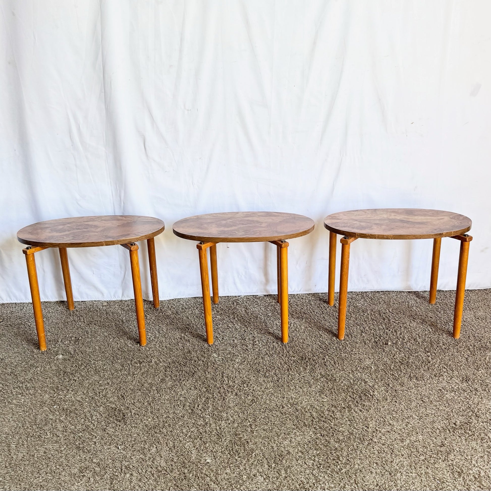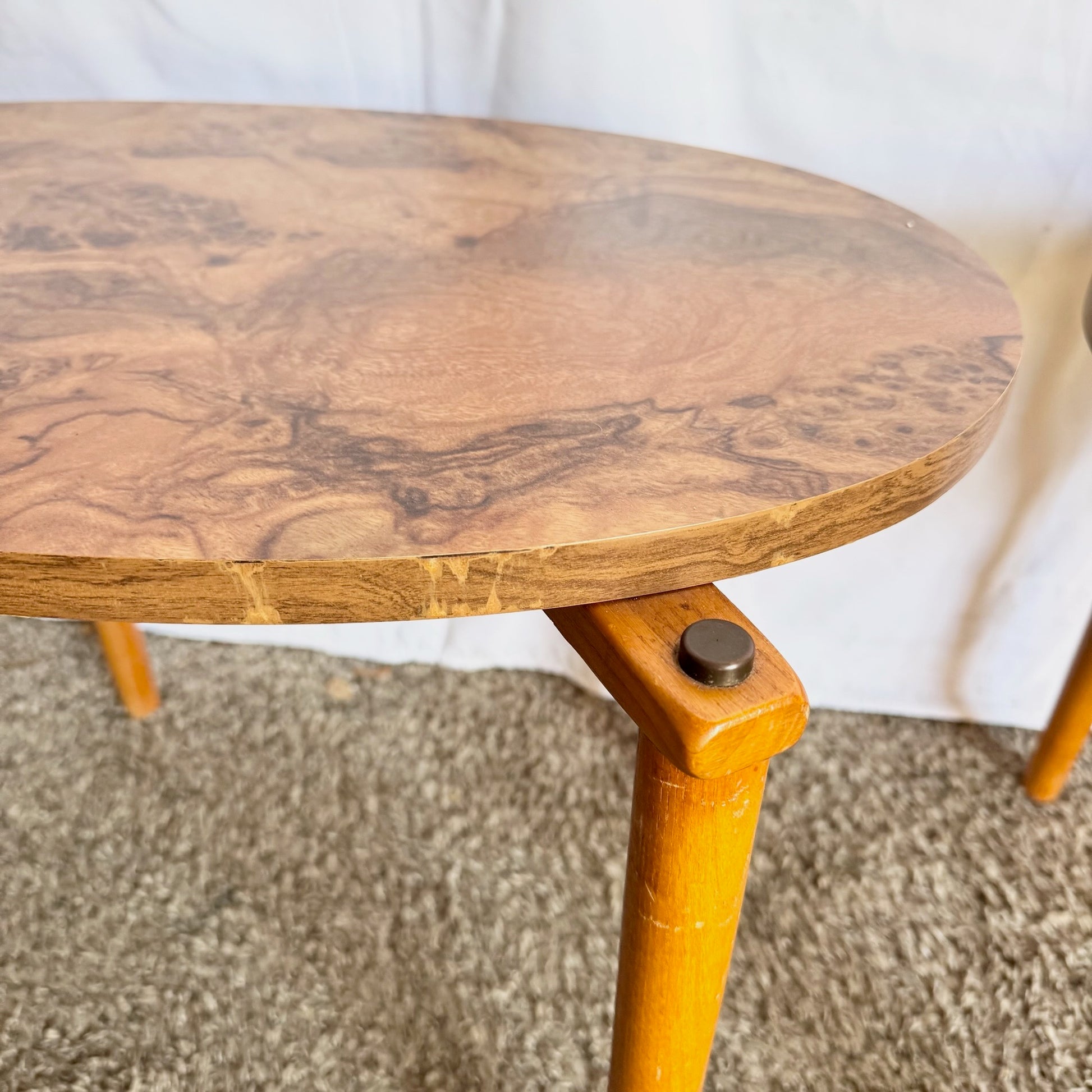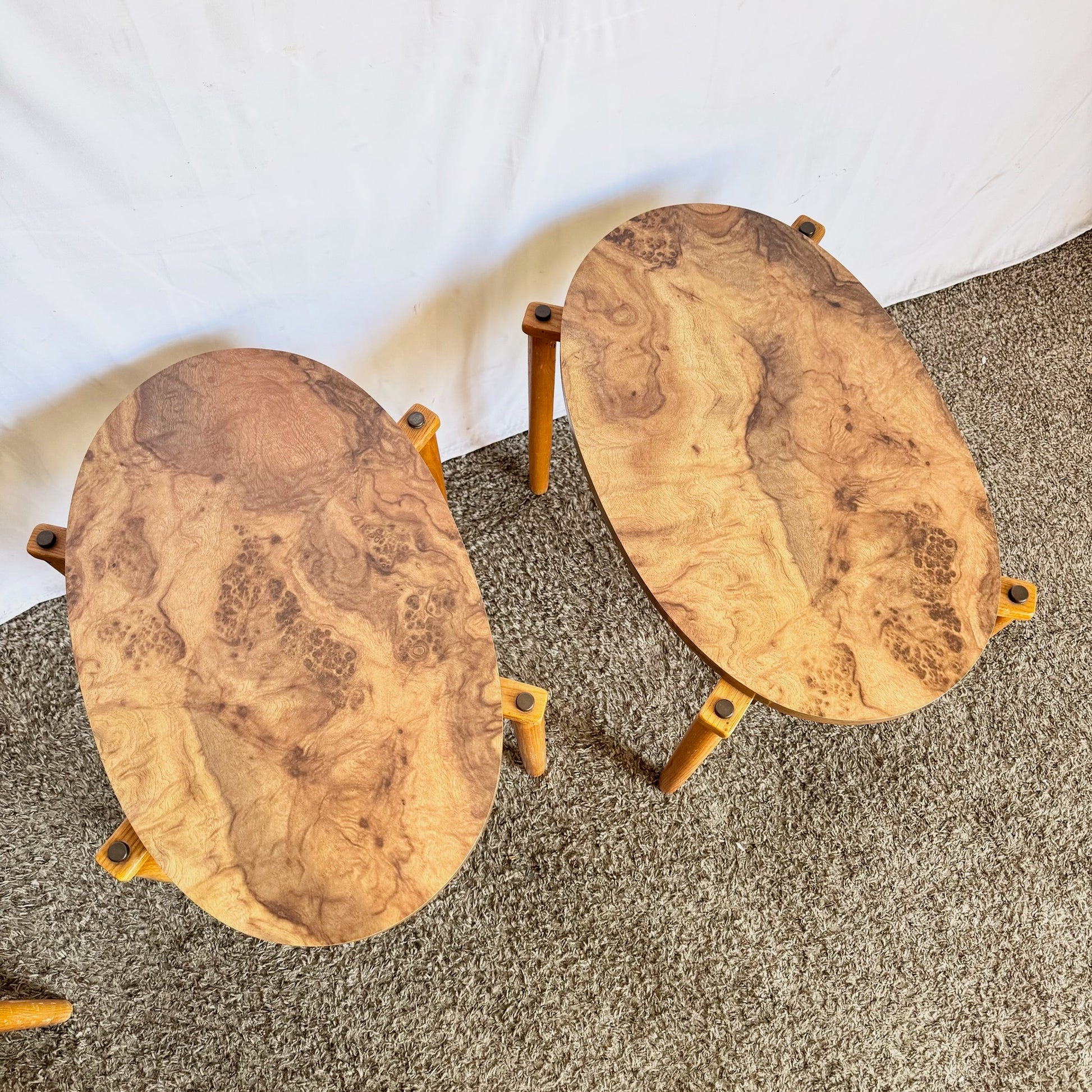 Mid Century Modern Oval Burlwood Laminate Nesting Tables