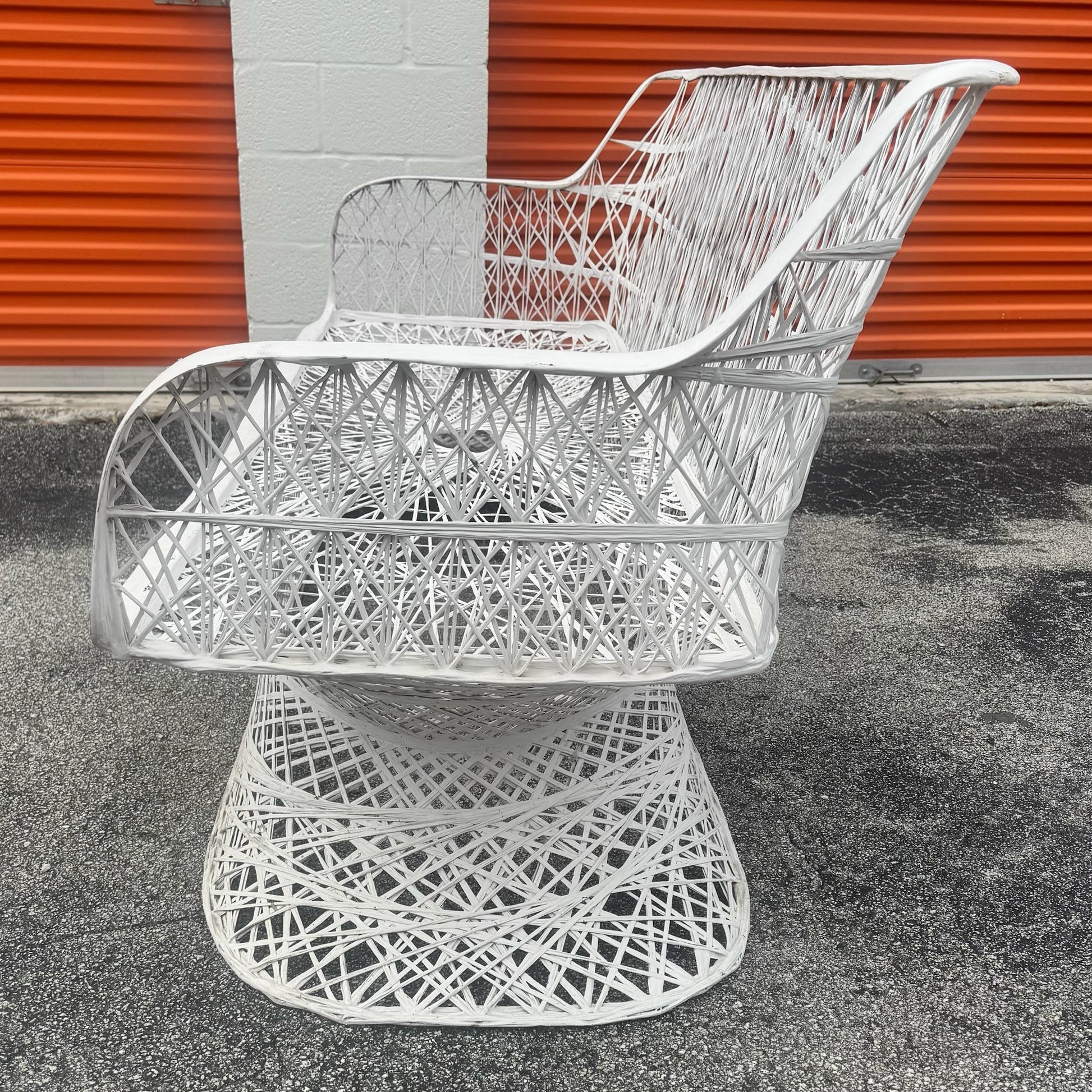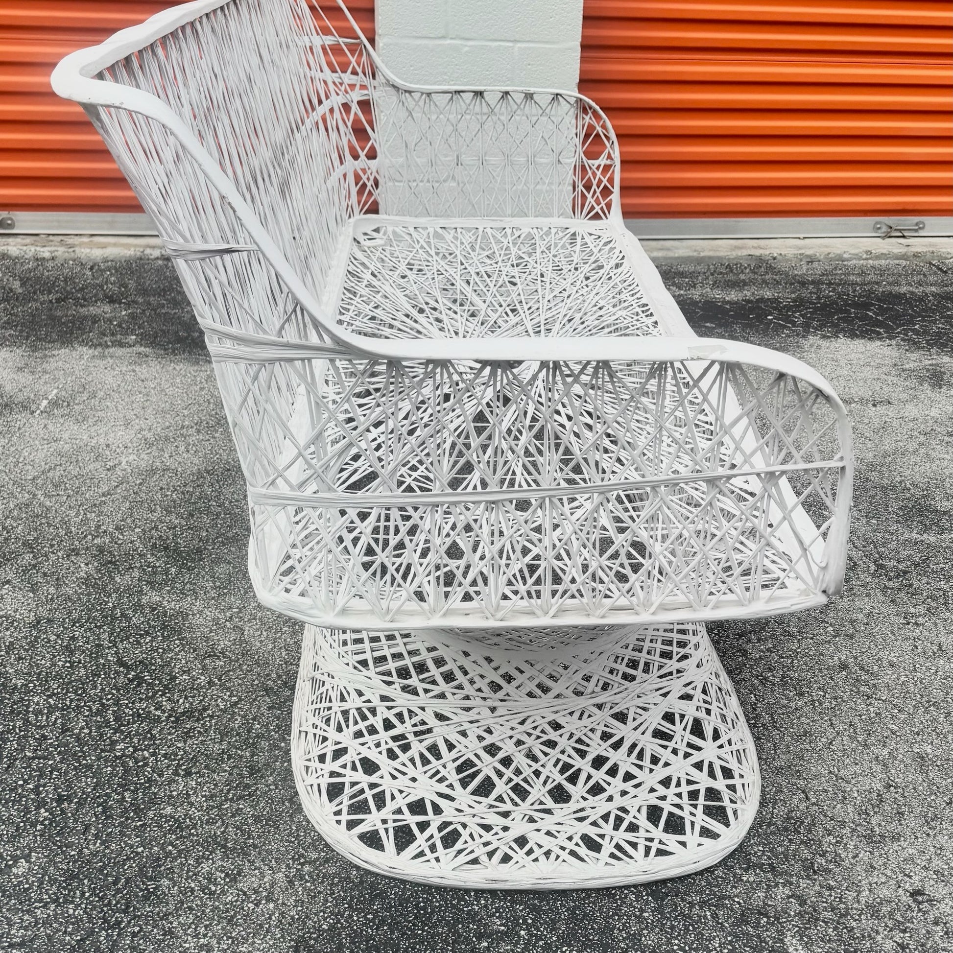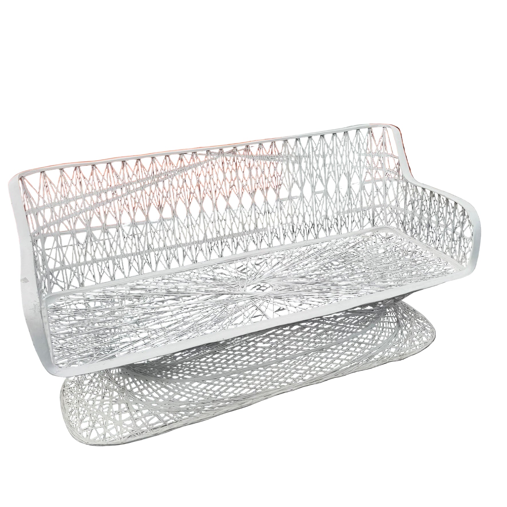 The Mid-Century Spun Fiberglass Sofa Bench captures retro modernism and airy elegance, making it a refined centerpiece for luxury indoor or covered outdoor spaces.