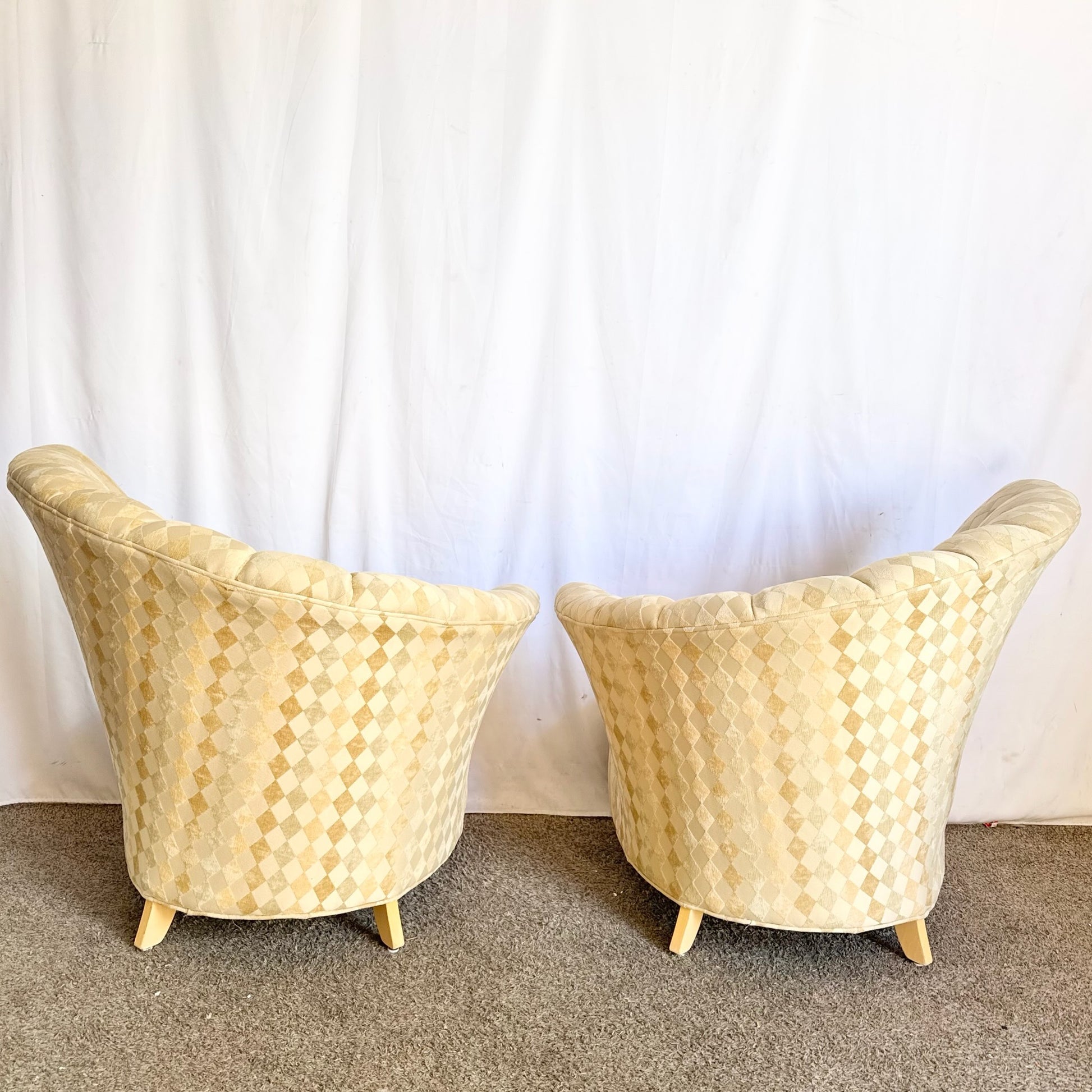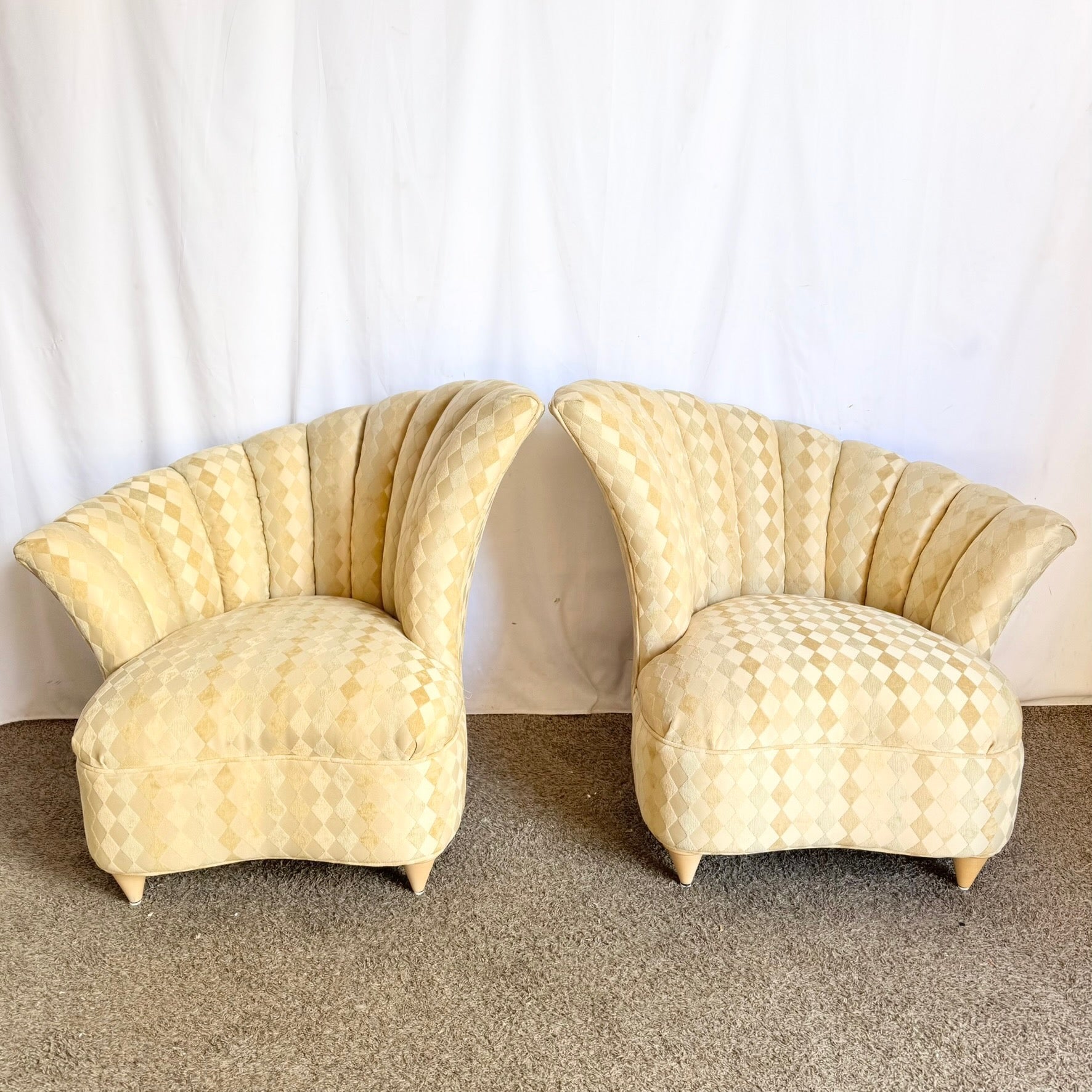 These Postmodern Ascending Clam Shell Chairs bring sculptural curvature and elegant presence to refined interiors.