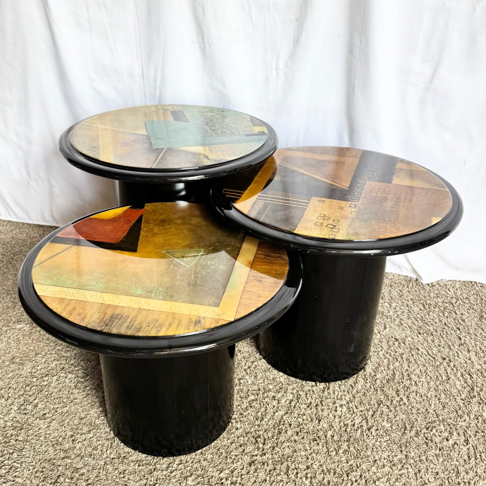 Postmodern Black and Abstract Nesting Mushroom Tables - Set of 3
