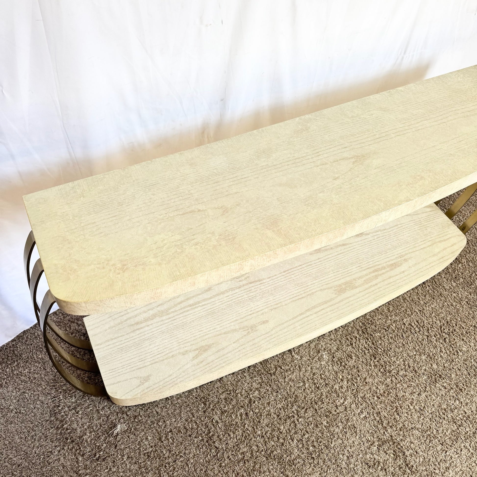 Postmodern Brushed Brass and Cerused Oak Console Table by Henredon