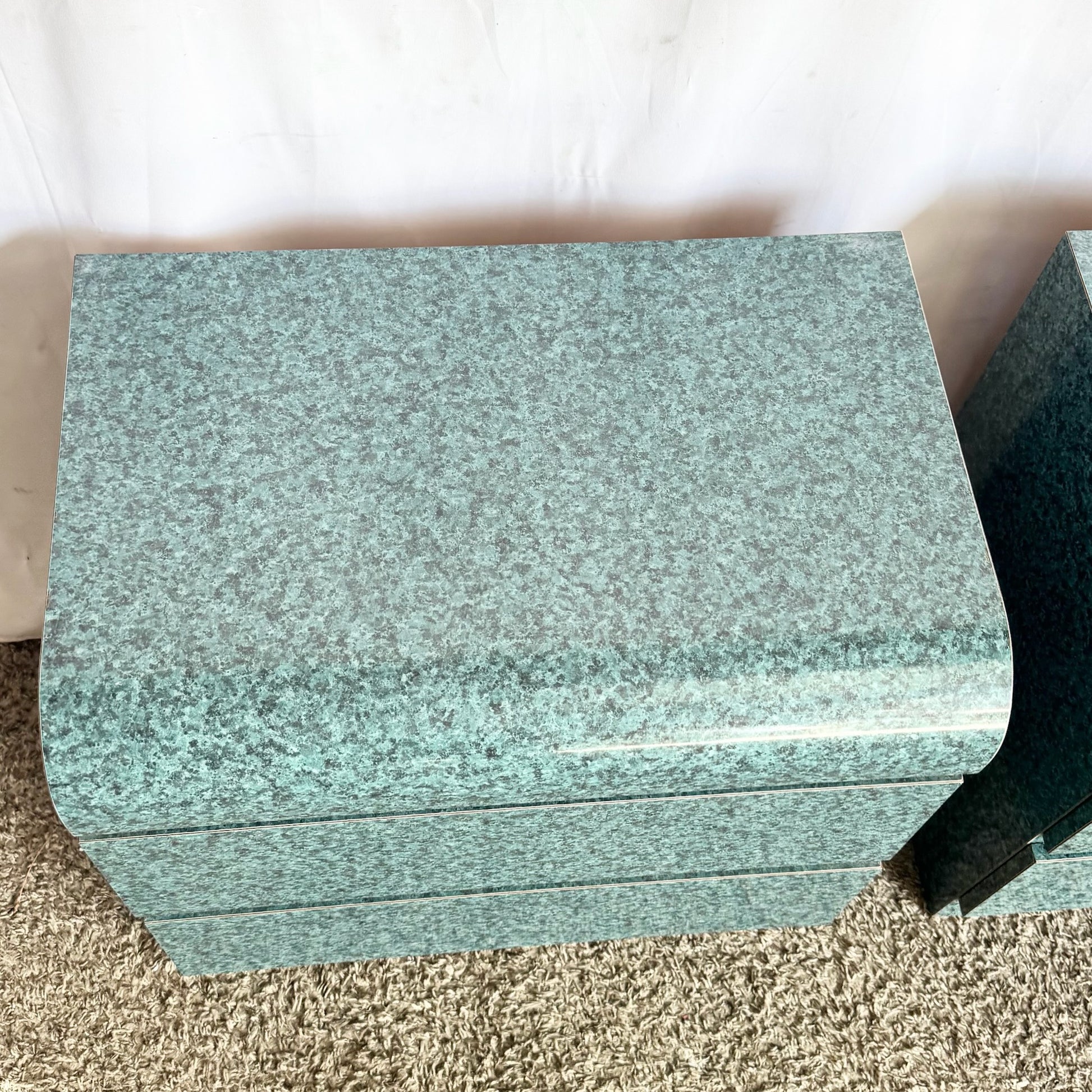 Postmodern Faux Teal Granite Waterfall Nighstands - A Pair
