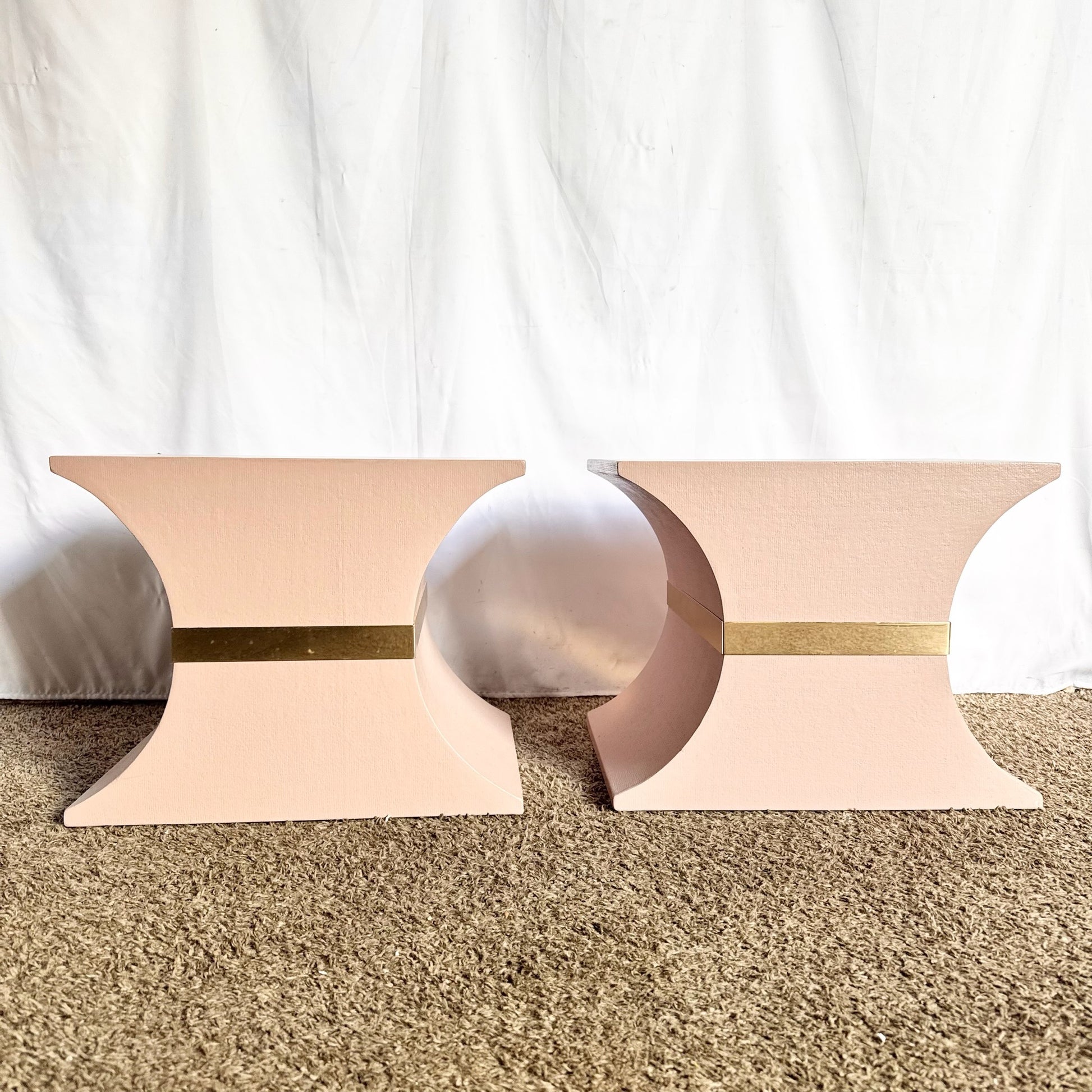 Postmodern Pink and Gold Grass Cloth Side Tables - A Pair