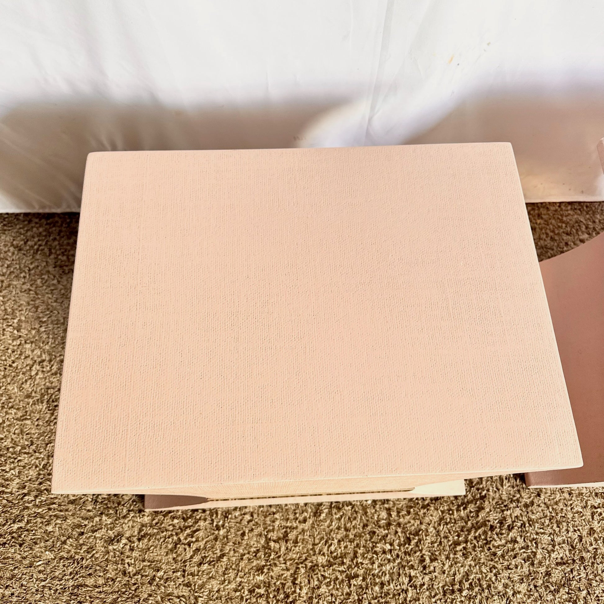 These Pink Gold Grass Cloth Tables bring a clean, sculptural presence with a soft blush texture and refined metallic detailing.