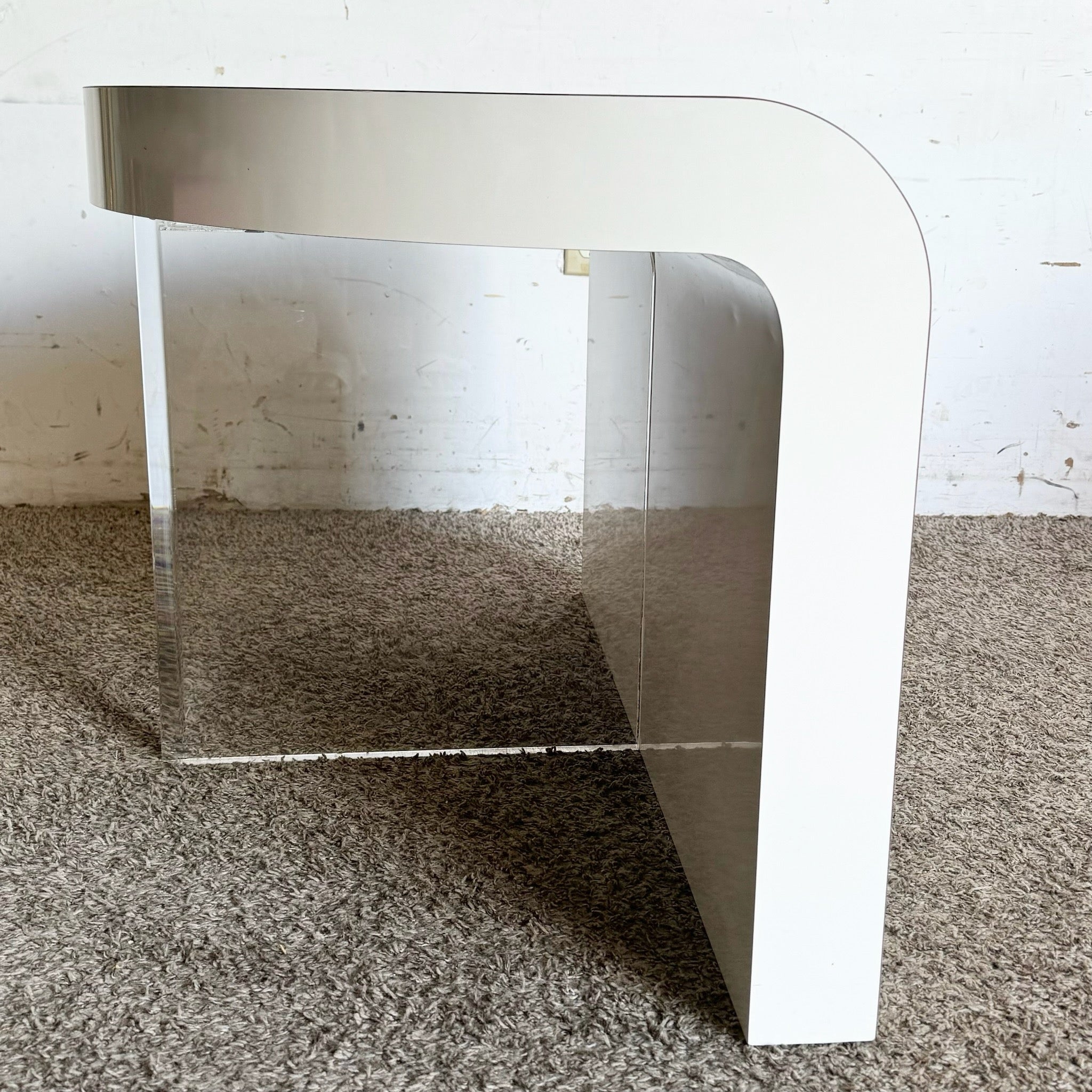 - Postmodern White Lacquer Waterfall Table with lucite accents