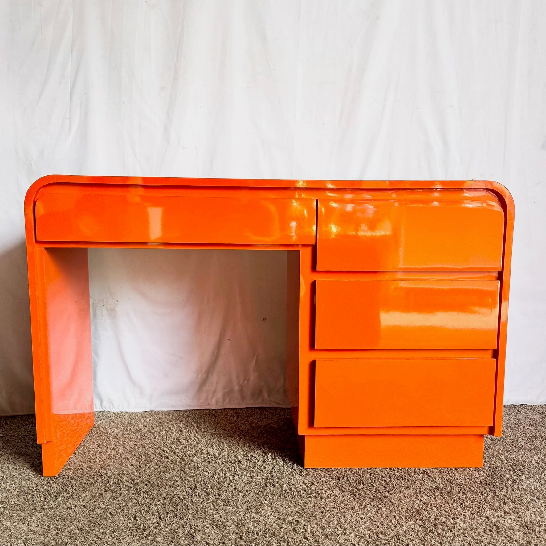 Postmodern Tangerine Orange Lacquer Laminate Waterfall Desk