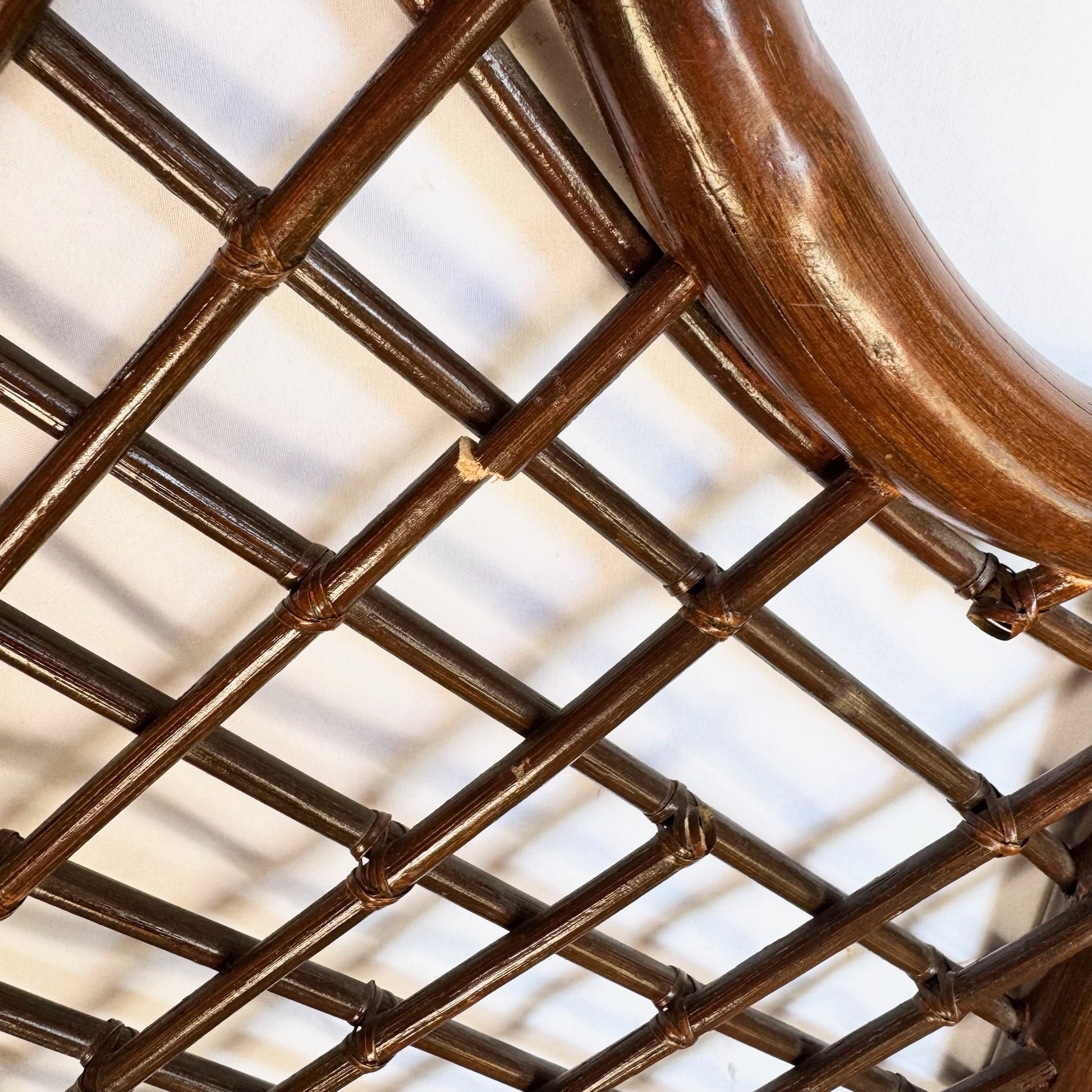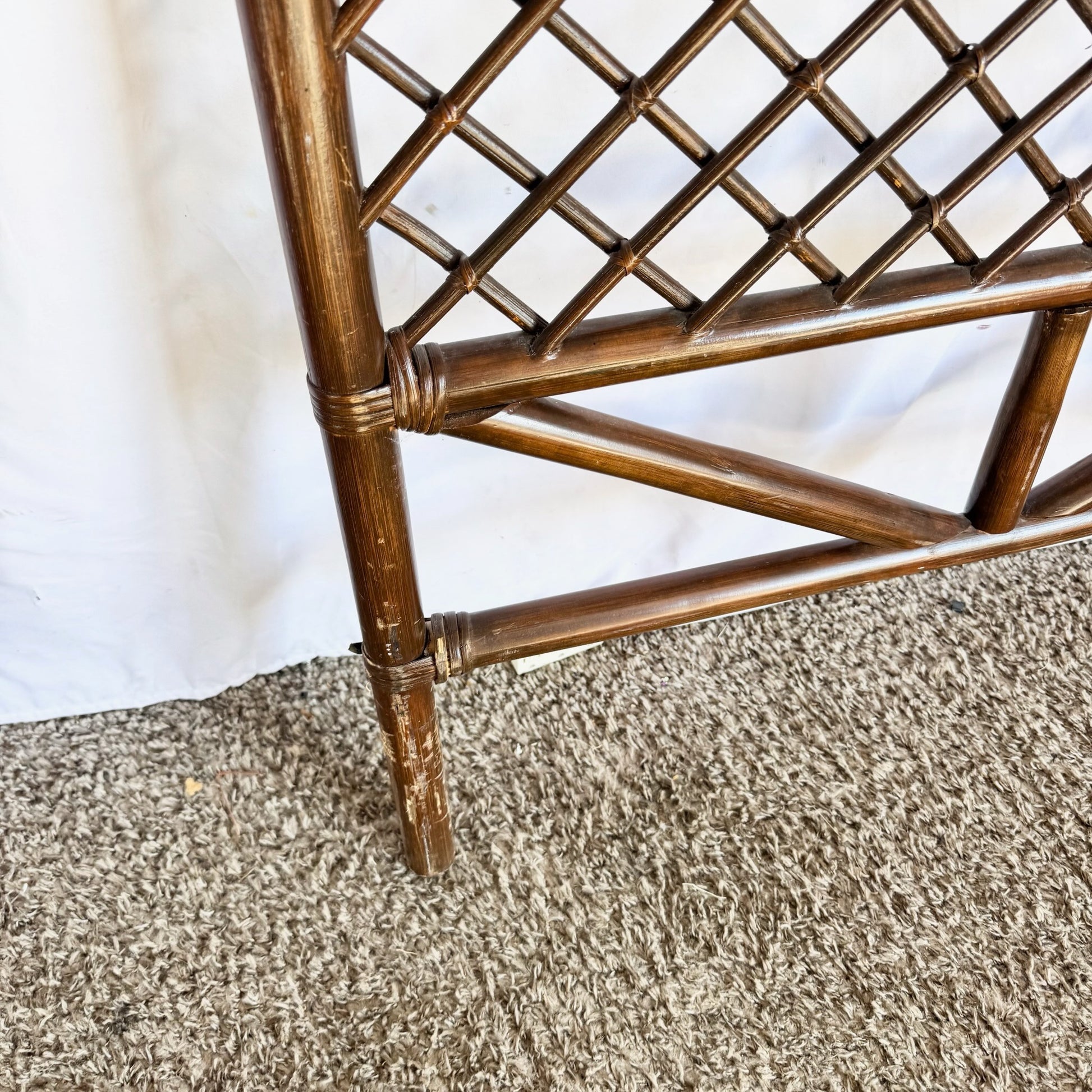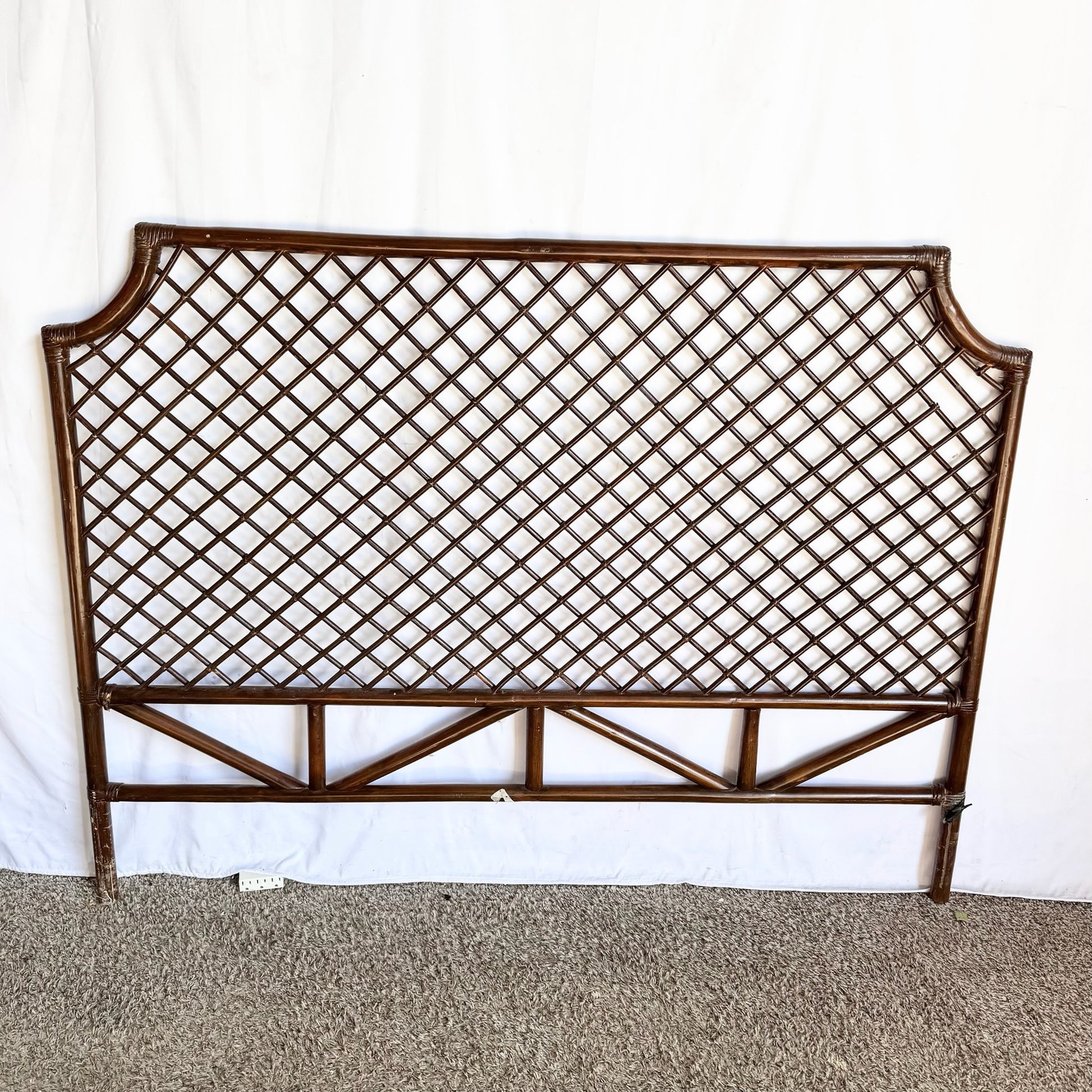 - The Vintage Boho Chic Rattan Headboard features finely woven rattan arches that create soft texture and organic rhythm against a neutral wall backdrop.