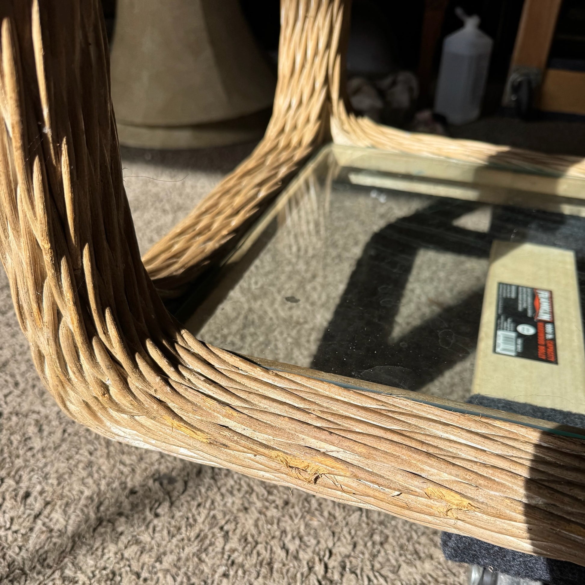 Vintage Boho Chic Twisted Wicker Etageres - A Pair