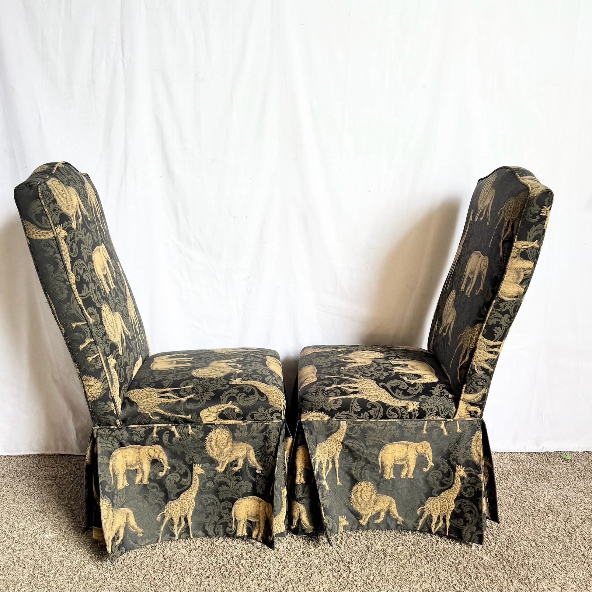 Vintage Regency Black and Gold Animals Skirted Parsons Dining Chairs - Set of 4