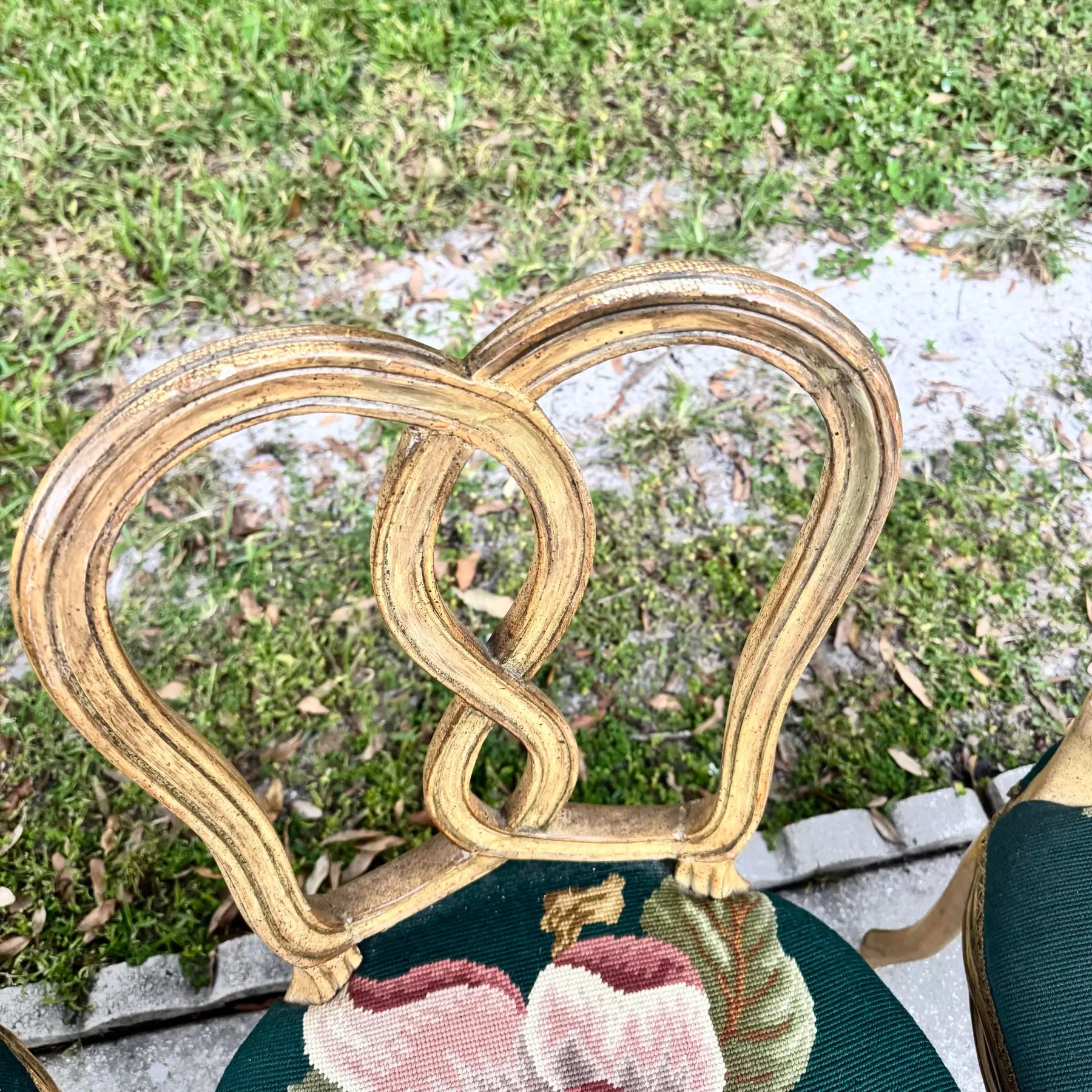- Rococo Floral Needlepoint Dining Chairs with intricate floral upholstery