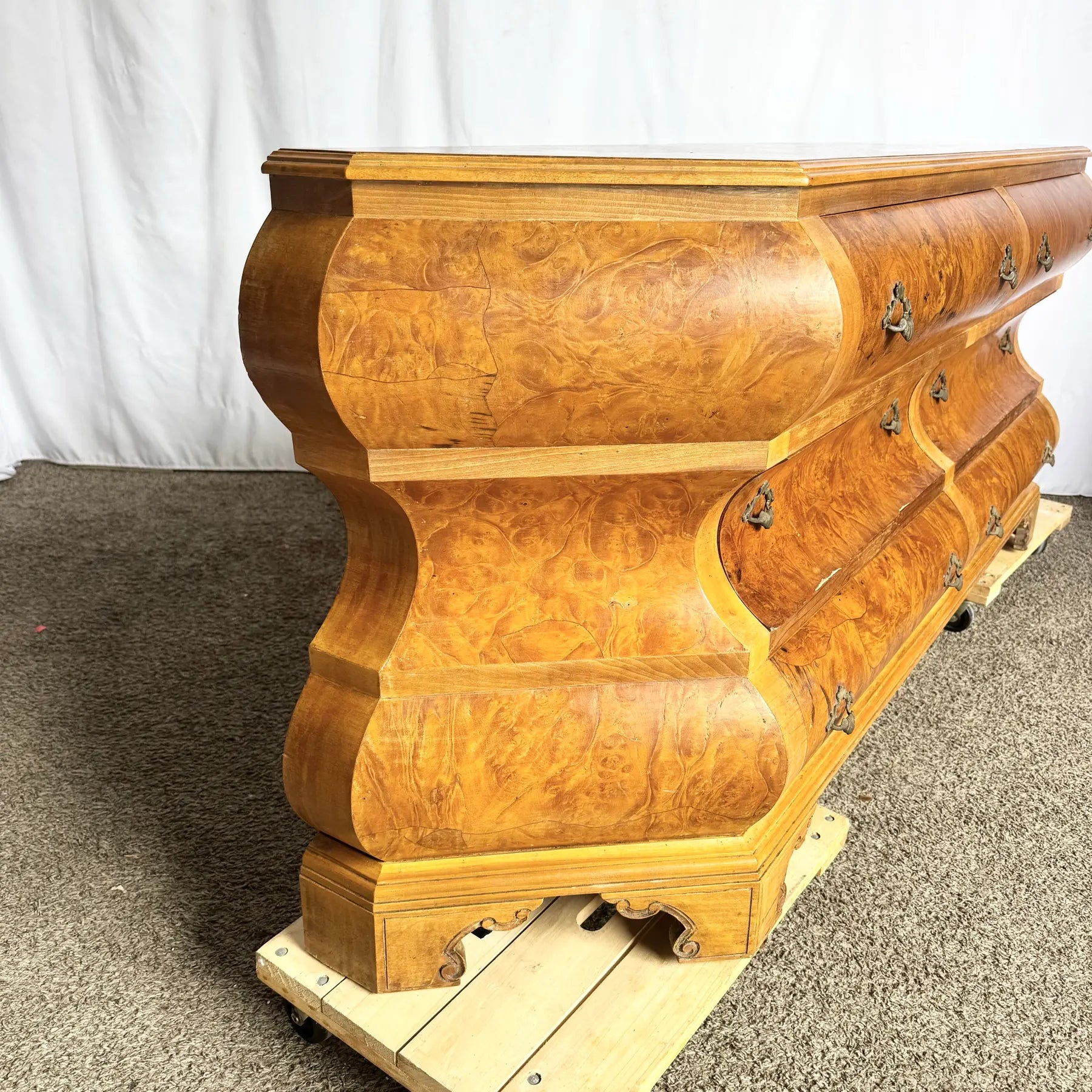 - Venetian Burlwood Bombe Dresser features signature “bombé” curved form